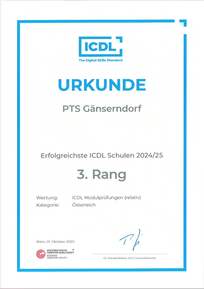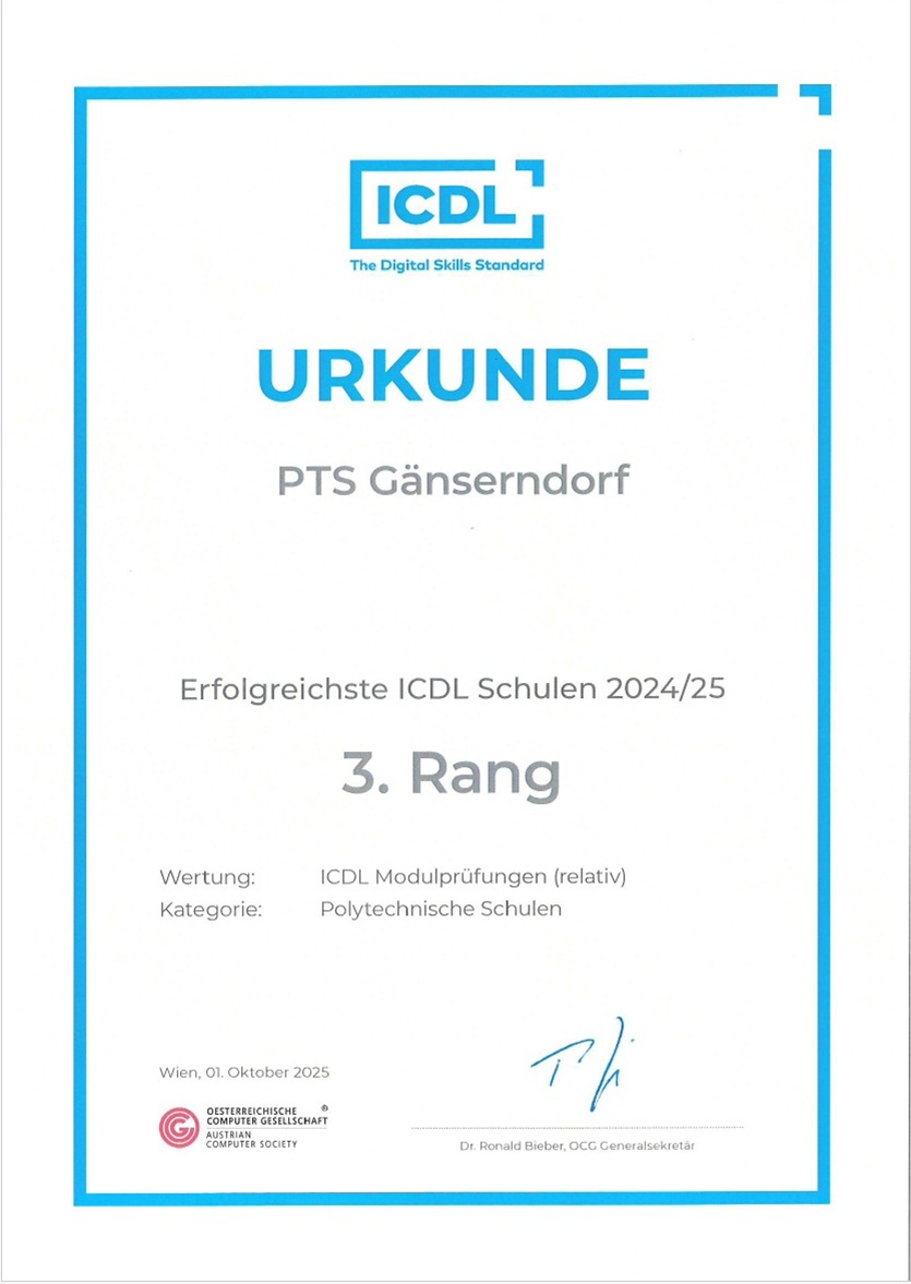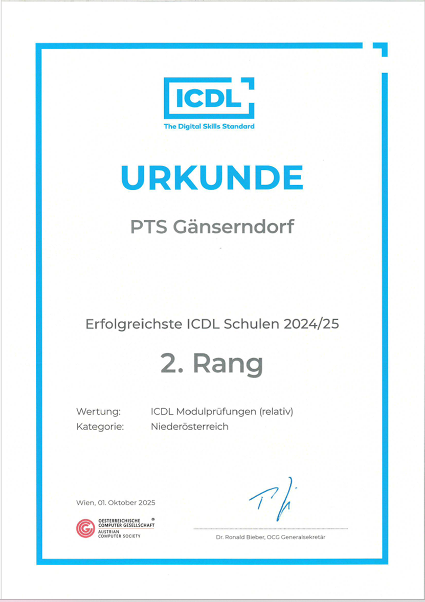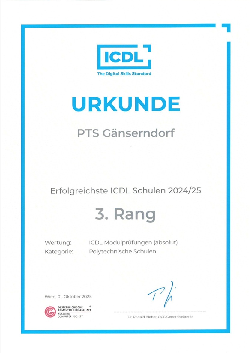 Am 16. Oktober 2025 wurden die erfolgreichsten ICDL-Schulen des Landes von Bildungsminister Christoph Wiederkehr und OCG-Präsident Wilfried Seyruck ausgezeichnet –